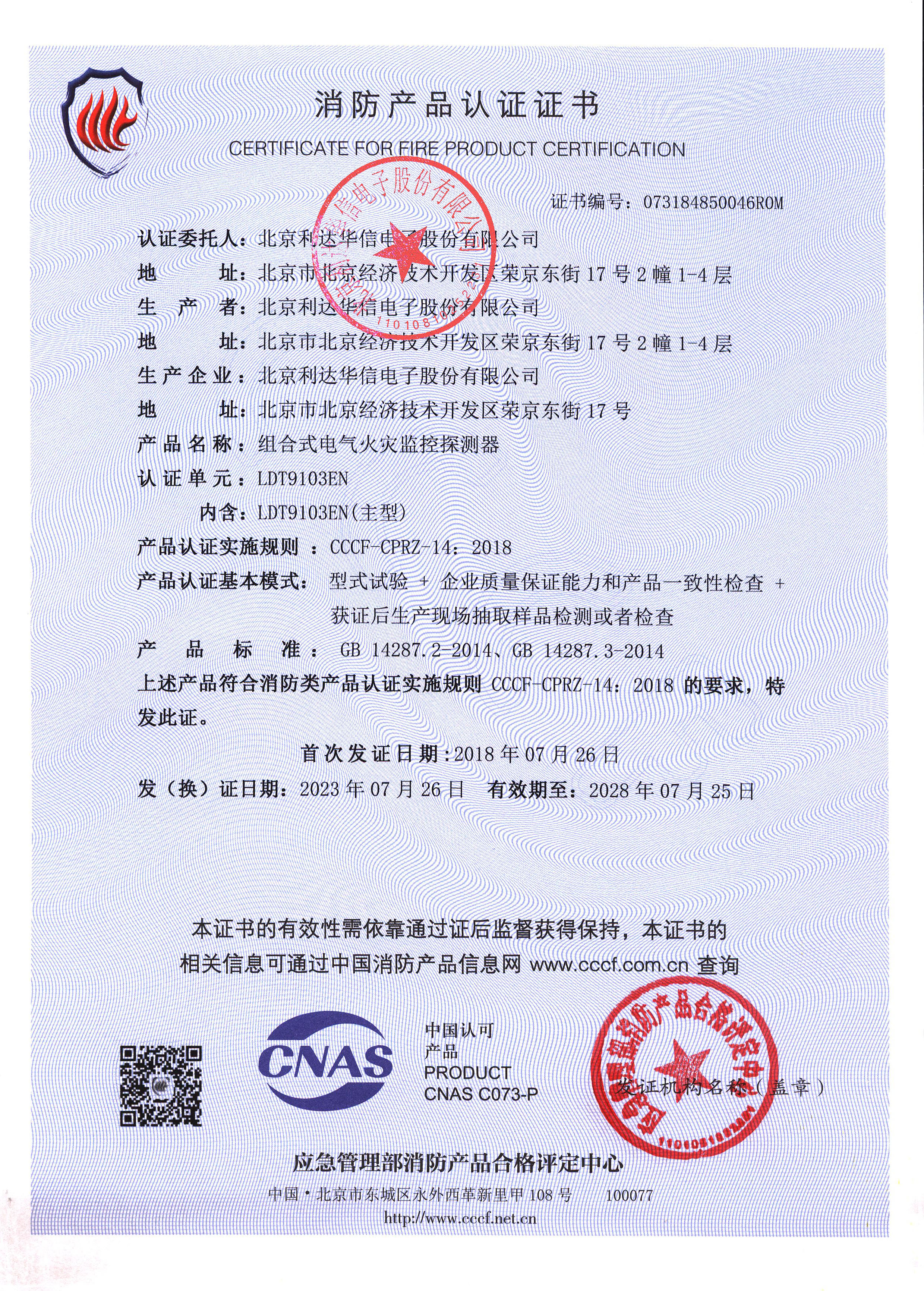 LDT9103EN 組合式電氣火災監(jiān)控探測器 消防產(chǎn)品認證證書073184850046ROM(蓋公章).jpg
