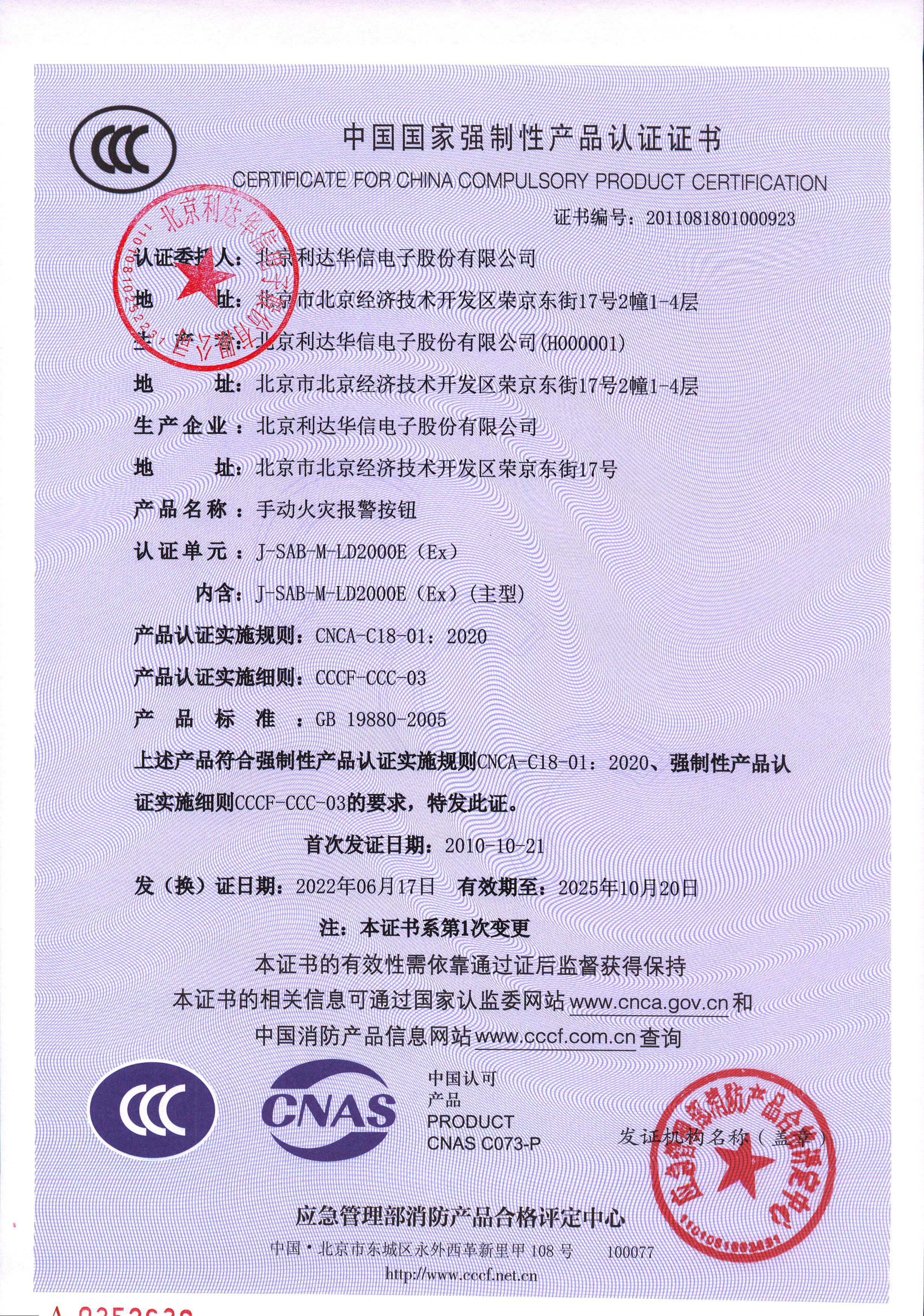 證書編號:2011081801000923 認(rèn)證單元:J-SAB-M-LD2000E(Ex) 產(chǎn)品名稱:手動火災(zāi)報警按鈕(蓋公章).jpg